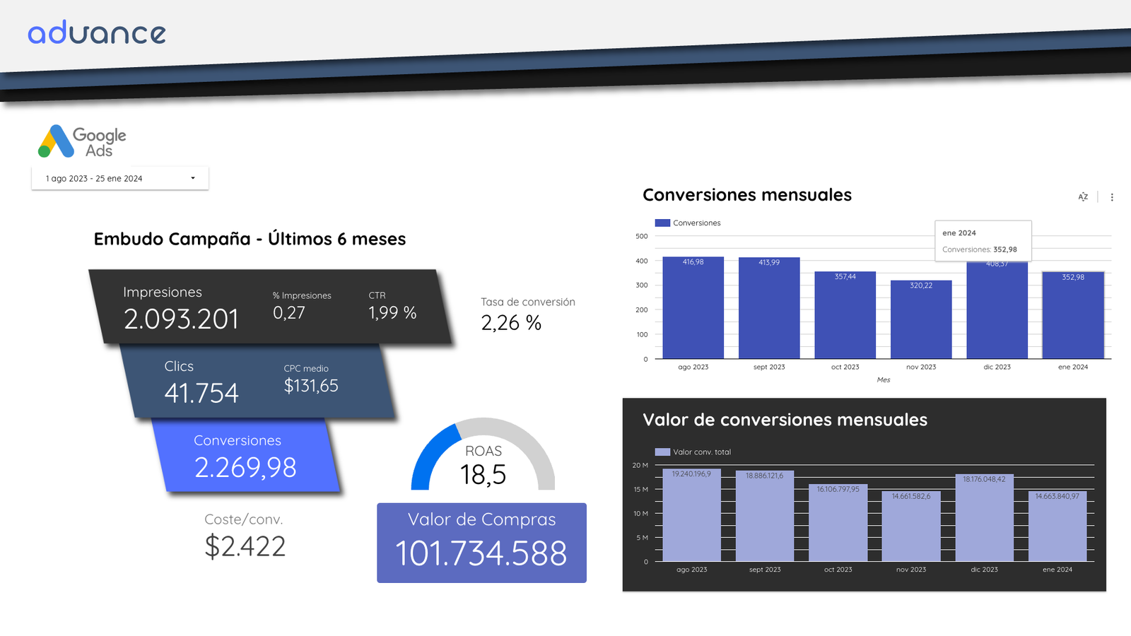 En Advance, somos expertos en marketing digital SEM. Podemos ayudarle a crear y gestionar campañas de Google Ads que le ayuden a alcanzar sus objetivos de negocio.